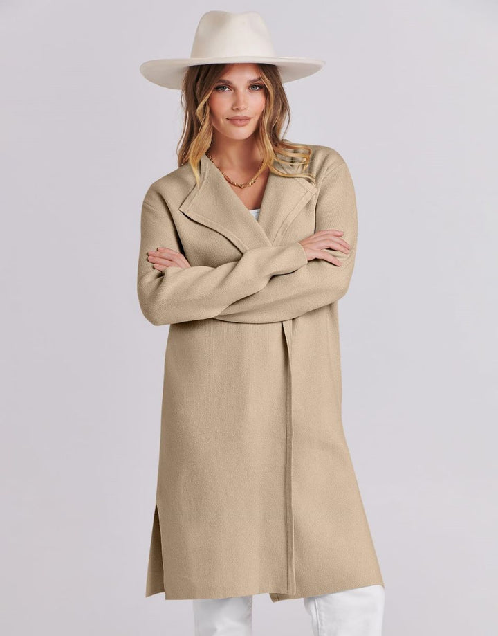 • Features - draped open front,pockets,long sleeve,thigh length cardigan,knitted,relaxed fit,Comfortable and classy