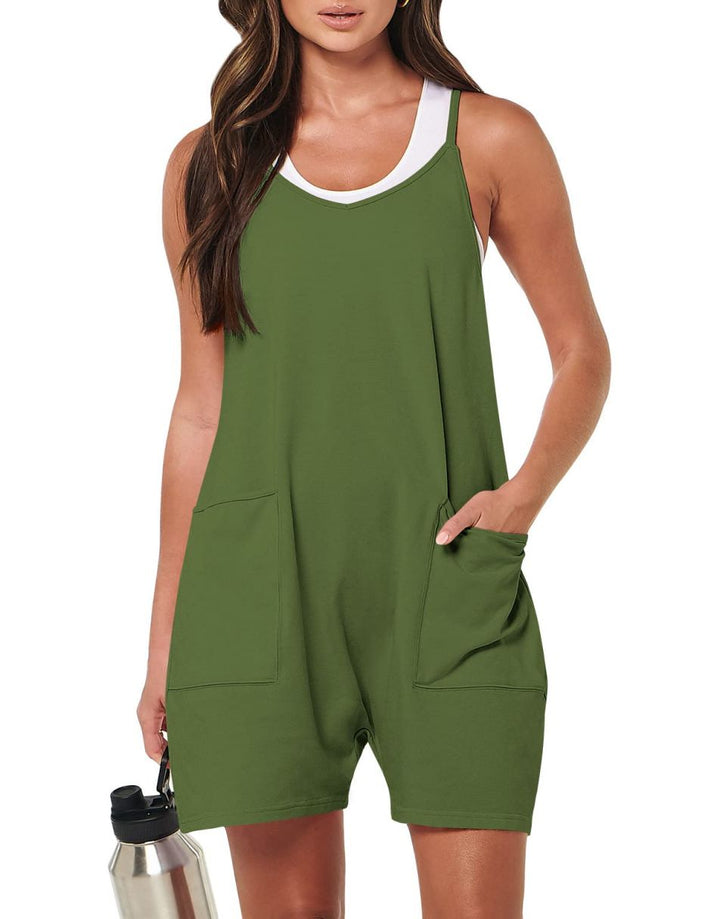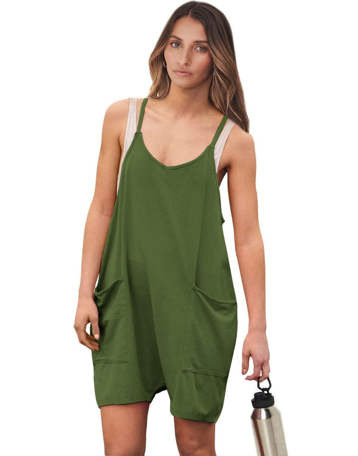 Anrabess Casual Rompers Loose Spaghetti Strap Shorts Jumpsuit with Pockets