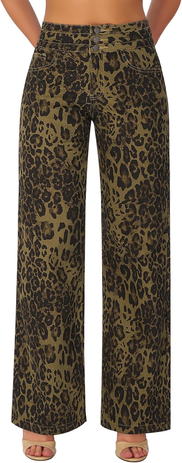 roswear Women’s Wide Leg Jeans Casual High Waisted Stretch Baggy Loose Jeans
